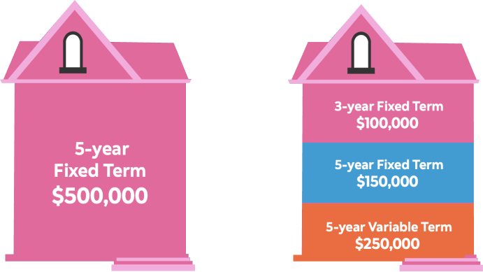 You have the flexibility to divide your mortgage into different terms and rates. This means that you can choose a fixed rate mortgage for one portion of your loan, while taking advantage of favourable interest rates with a variable rate mortgage for the other portion.